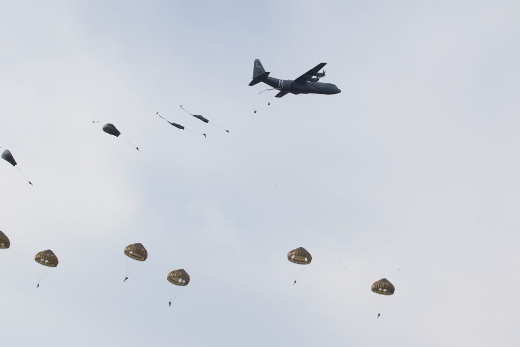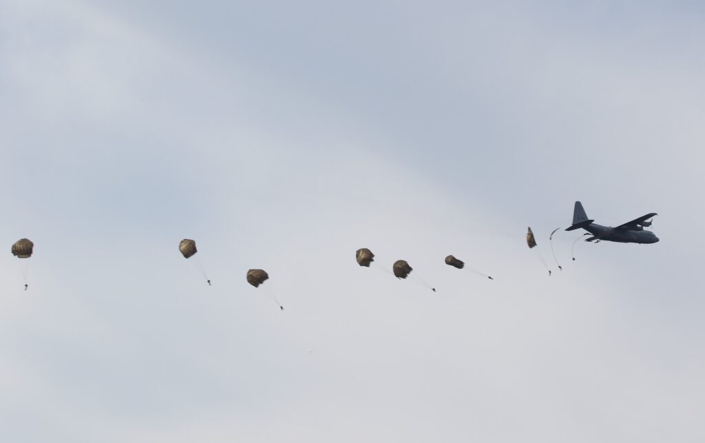 Tijdens de operatie worden ook zwaar materieel en voorraden gedropt, via het zogeheten container delivery system. Specialisten van 11 Luchtmobiele Brigade zorgen dat deze ladingen veilig zijn ingepakt en bevestigd, om deze op de juiste manier met parachutes uit de vliegtuigen te droppen.