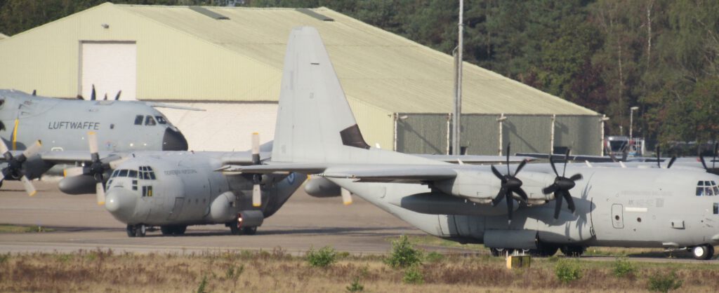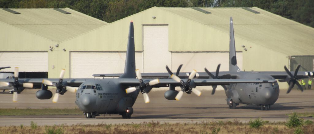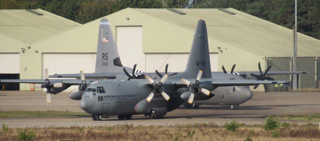 10.09.2025. Jan Klijs heeft Vandaag een dag Falcon Leap bezocht en een mooie foto serie gemaakt met o.a twee Herculessen ITAF C-130J REG 46-44 en RNLAF Hercules C-130H-30 G-275