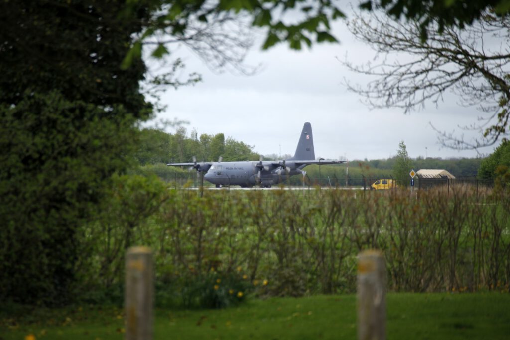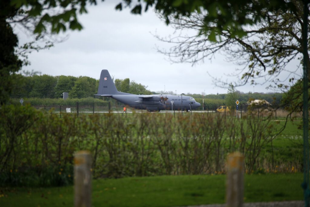 Op Twente Airport worden weer luchtlandingsoperaties uitgevoerd met vliegtuigen die militaire voertuigen op de grond afzetten.