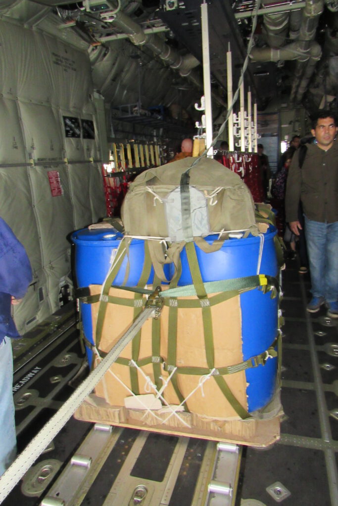 Een bijzonder moment was het landen op een ongeasfalteerde start- en landingsbaan. De 11 Luchtmobiele Brigade van de Koninklijke Luchtmacht en de brandweer van Vliegbasis Eindhoven fungeerden hierbij als ogen en oren op de grond en zorgden ervoor dat de transportvliegtuigen veilig konden landen en opstijgen.